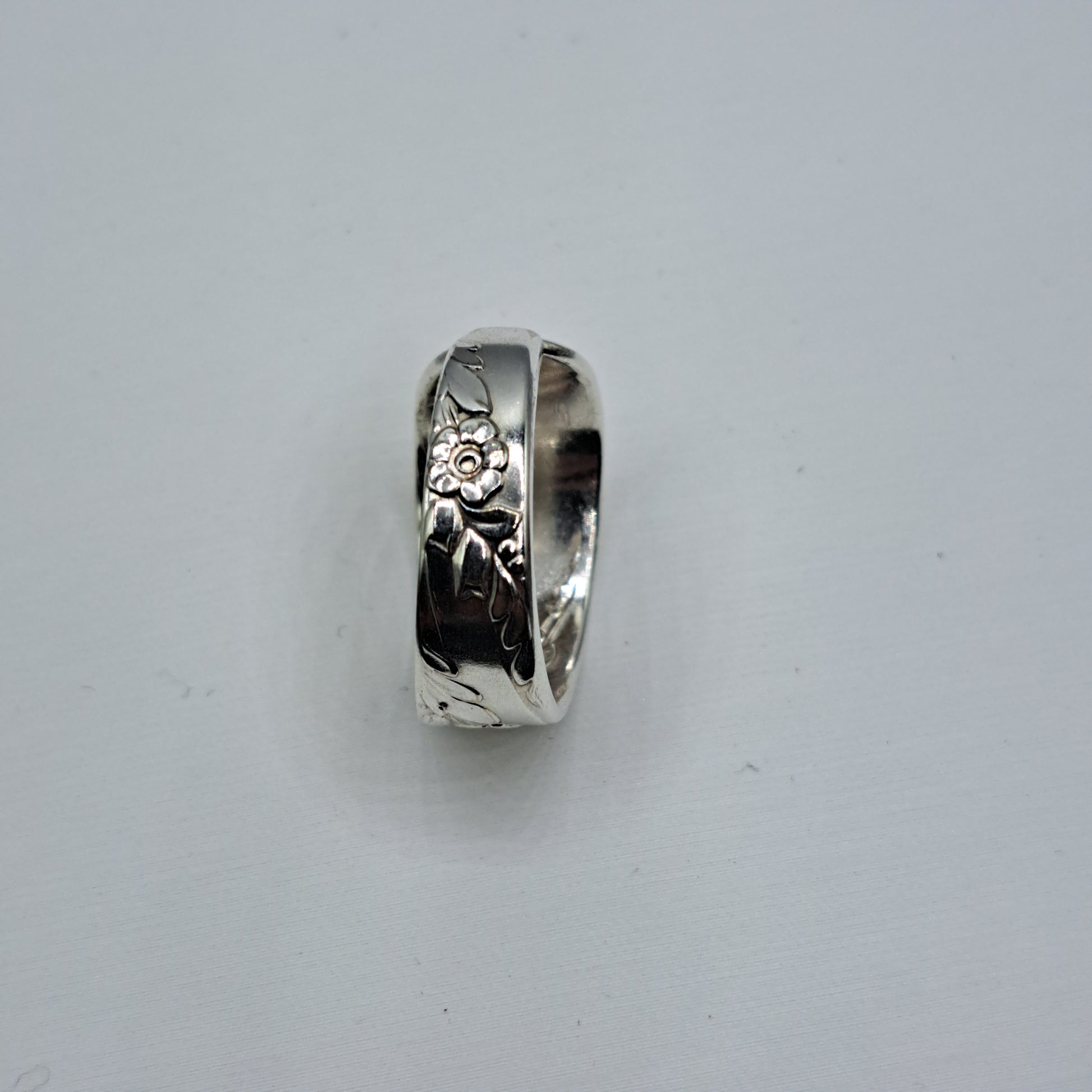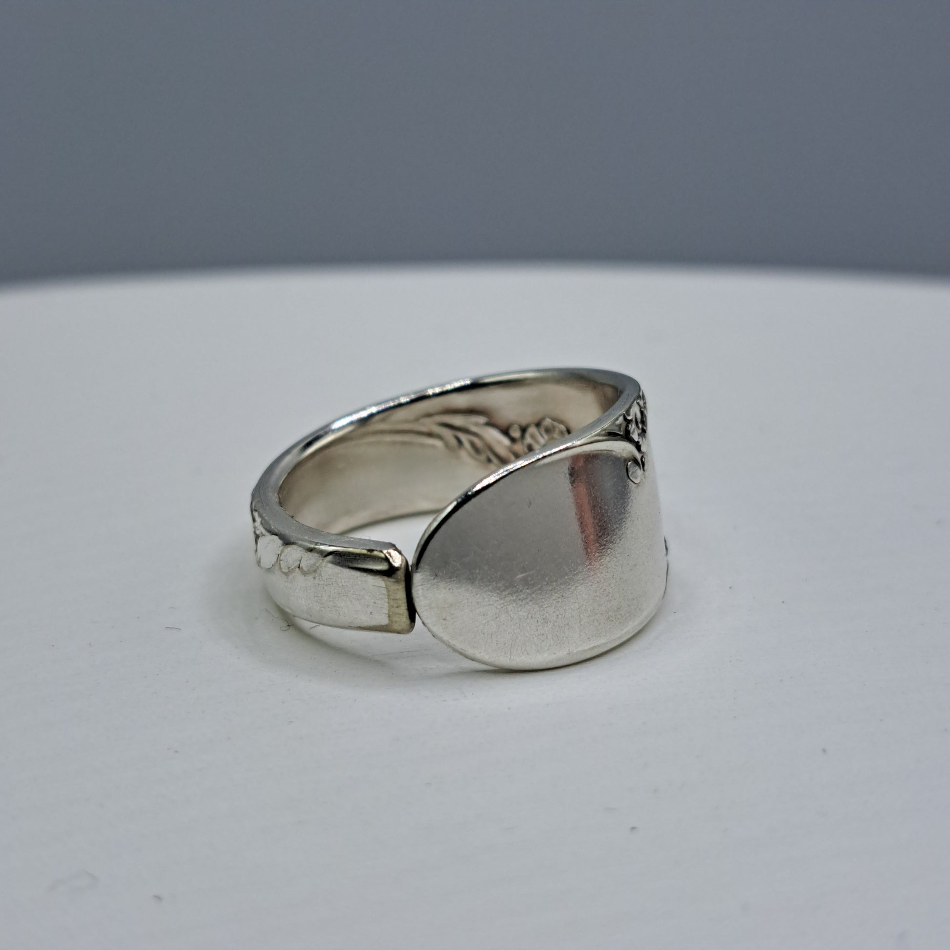 This spoon ring is handcrafted from vintage silverware and formed by hand into a wearable ring.
