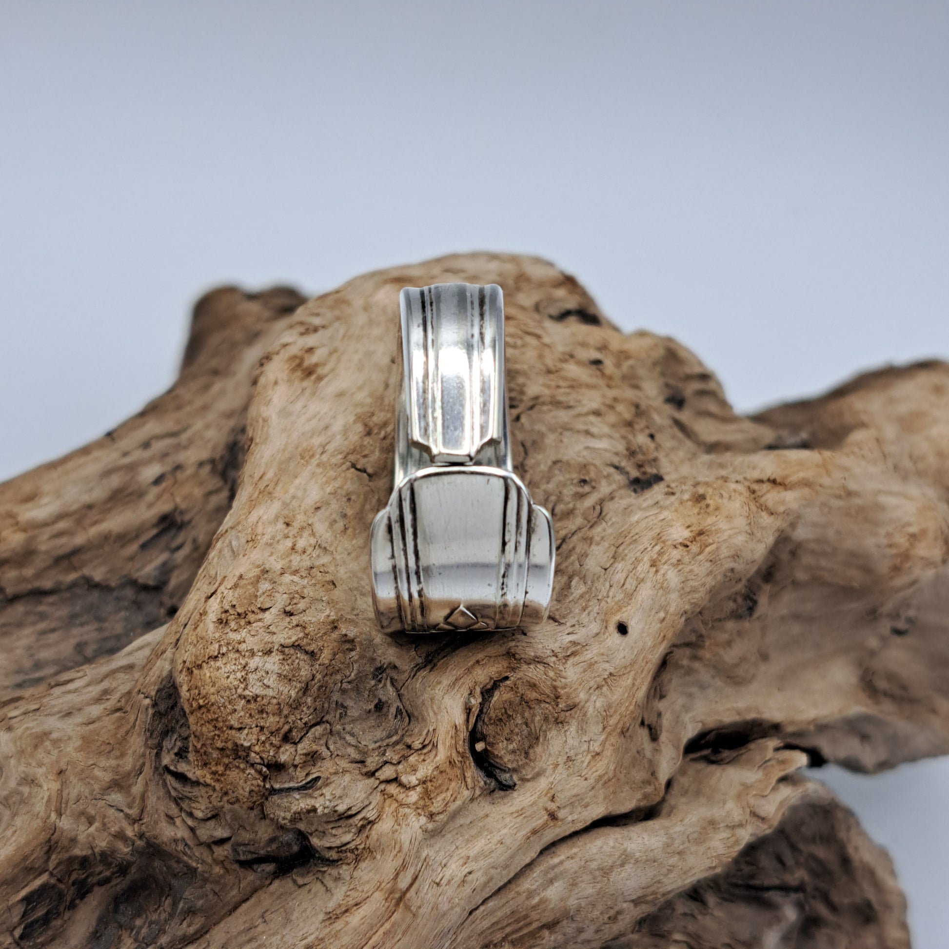This spoon ring is handcrafted from vintage silverware and formed by hand into a wearable ring.