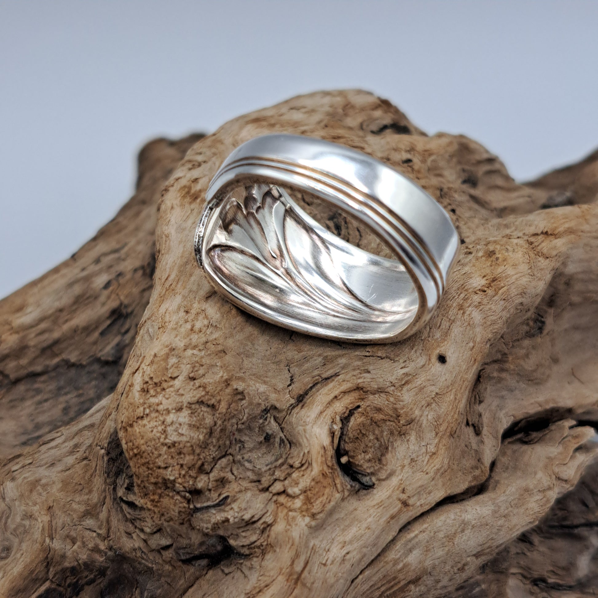 This spoon ring is handcrafted from vintage silverware and formed by hand into a wearable ring.